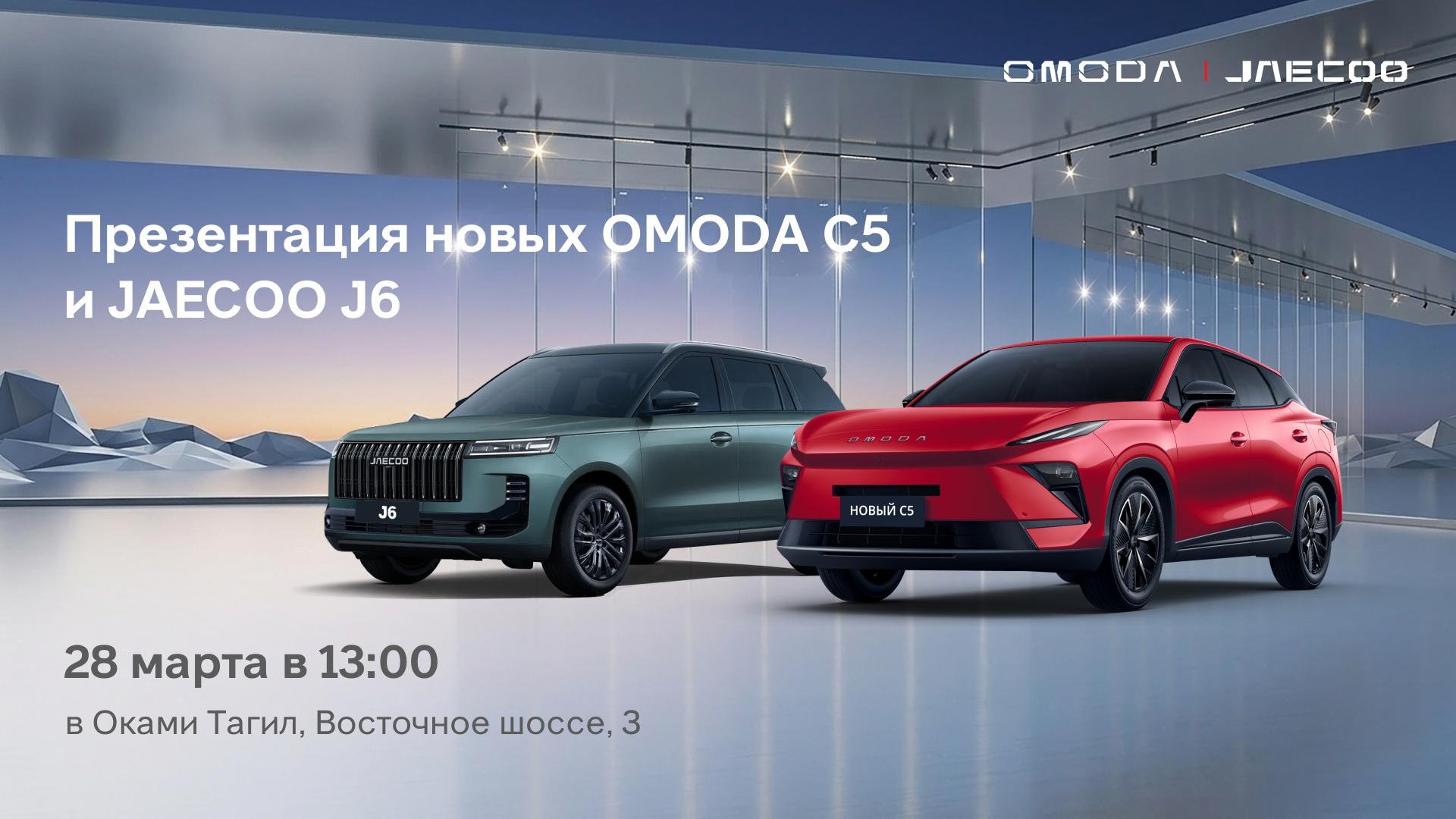 В честь этого 28 марта в 13:00 автоцентр «Оками Тагил» на Восточном шоссе,3 проводит презентацию сразу двух моделей - новых OMODA C5 и JAECOO J6.